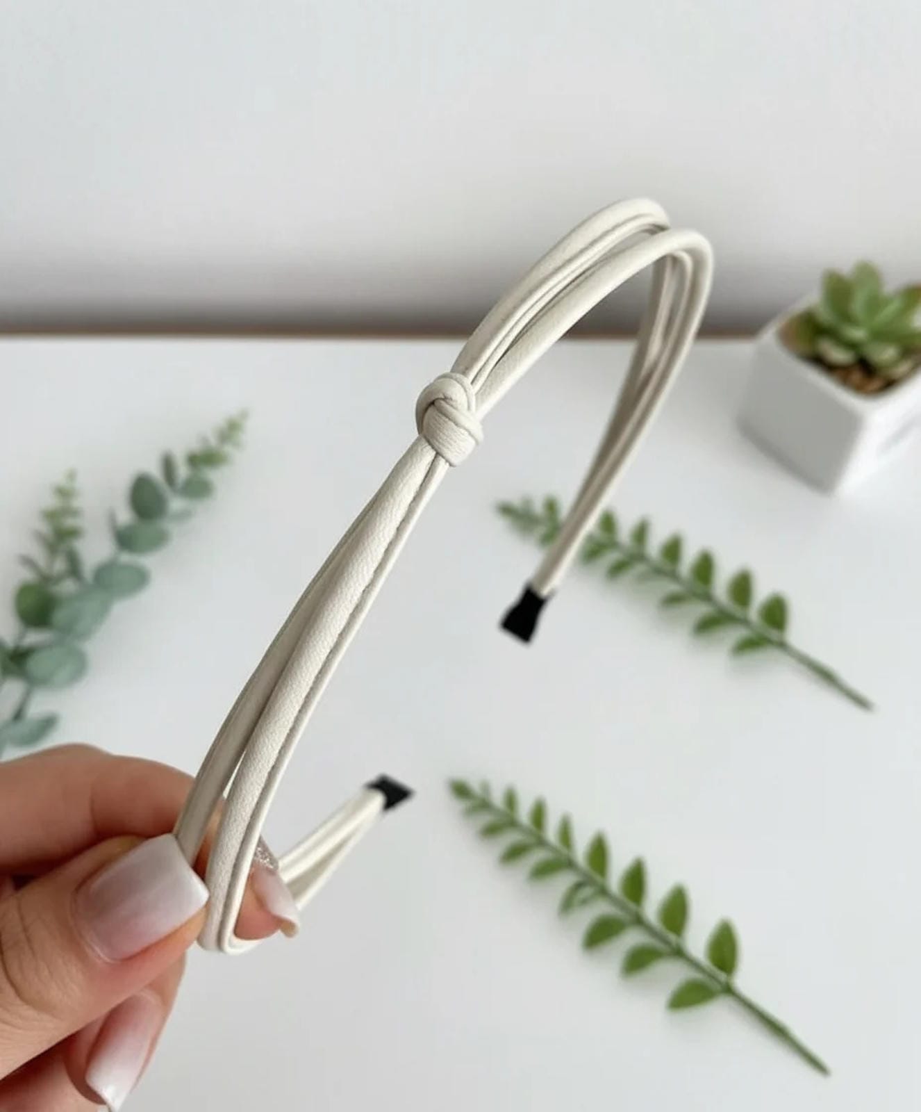 Dainty Thin Leather Knotted Headband – Minimalist Neutrals