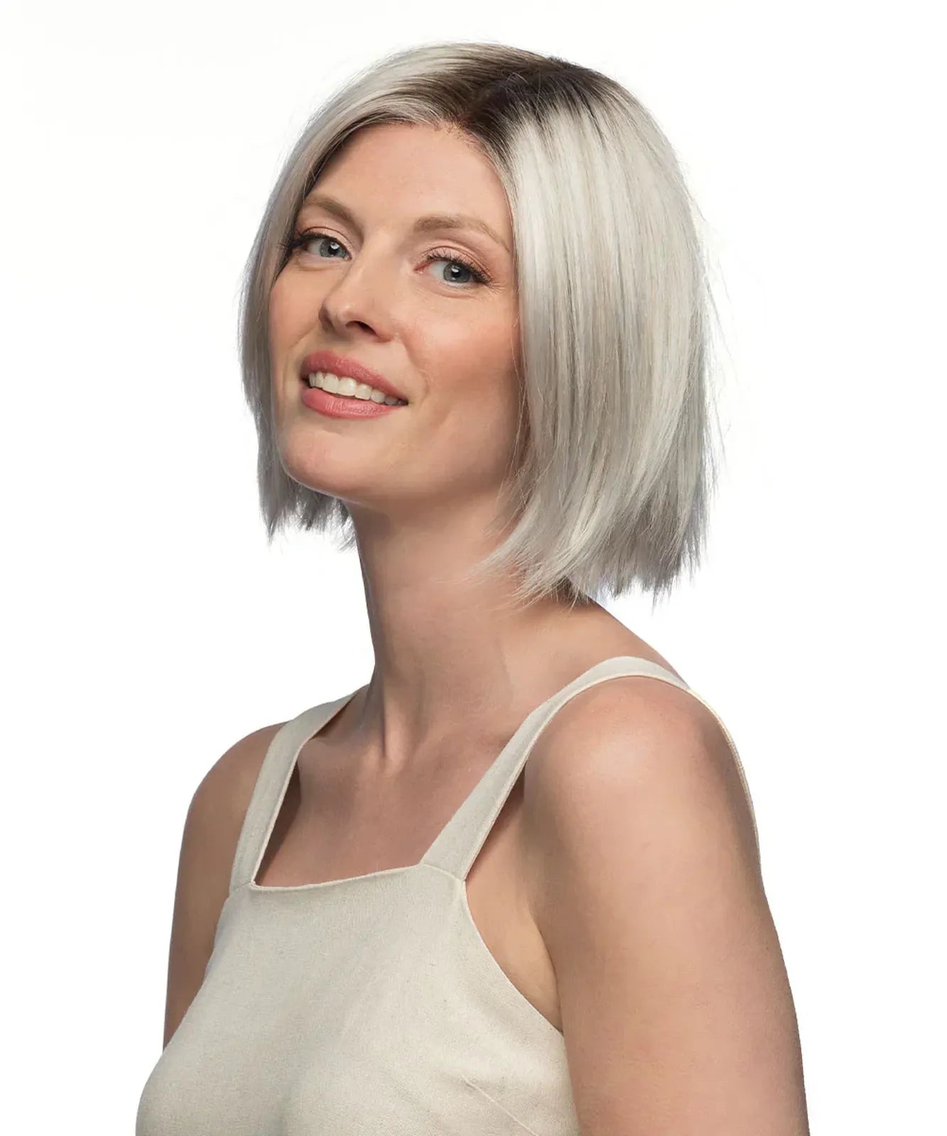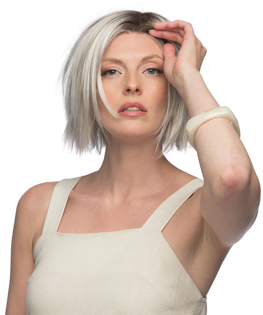Monofilament Top with Swiss Lace+ Front | With clean lines and sharp edges, Lumi gives a contemporary edge to the classic bob. Designed with a monofilament top and Swiss Lace+ front, Lumi offers a seamless, natural look that enhances your style effortlessly. Embrace the confidence and versatility of this chic hairstyle, ideal for those seeking a bold yet sophisticated look.