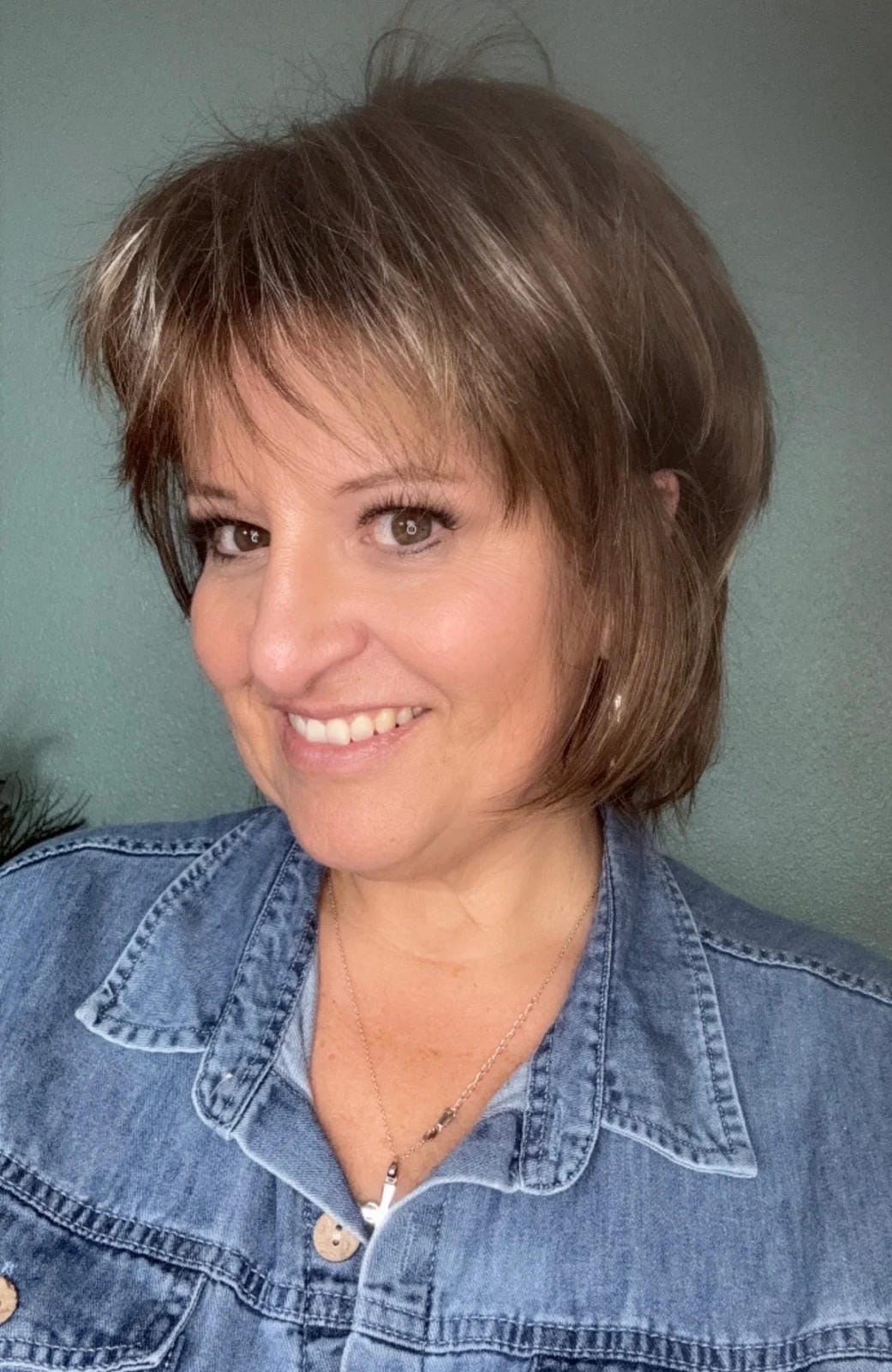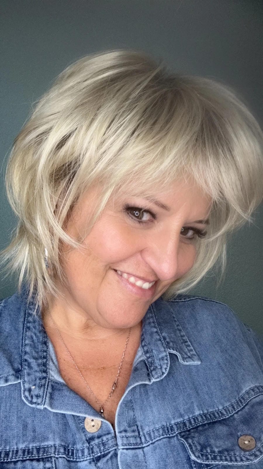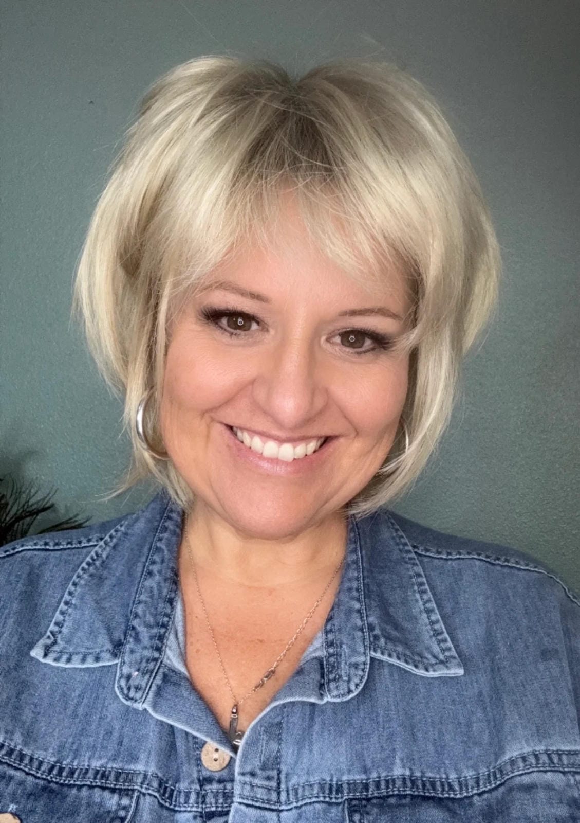 Medium layered bob with soft bangs and face-framing layers.